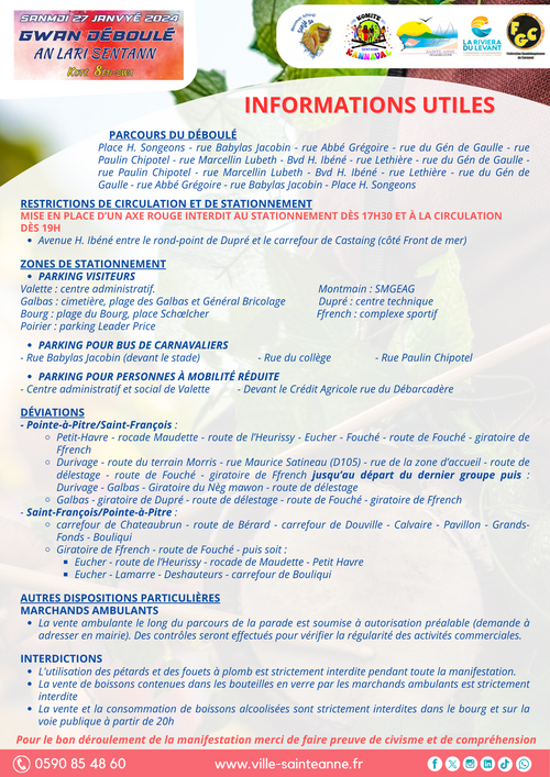 Le Maire Francs Baptiste vous remercie de votre compréhension et vous demande de faire preuve de civisme afin de profiter pleinement de cette période. Bonne saison carnavalesque à tous !