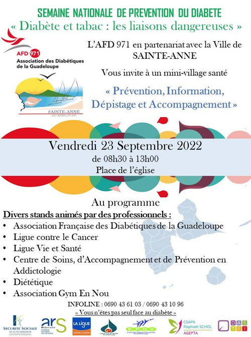 L’association AFD 971 en partenariat avec la Ville de Sainte-Anne organise un mini-village santé sur le thème « Prévention, Information, Dépistage et Accompagnement »