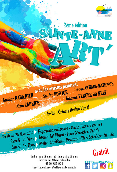 La Ville de Sainte-Anne, toujours dans sa volonté de sensibiliser la population aux pratiques artistiques et de stimuler sa créativité, vous invite à la 2ème édition de « Sainte-Anne Art’ ».