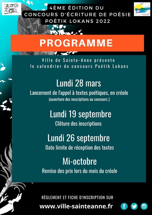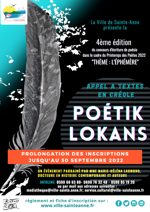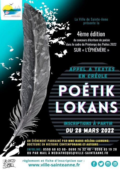 A cette occasion, Christian BAPTISTE, le Maire de la Ville, invite le public à s’inscrire au concours et à écrire des textes poétiques en créole autour de la thématique retenue cette année : « L’ÉPHÉMÈRE ».