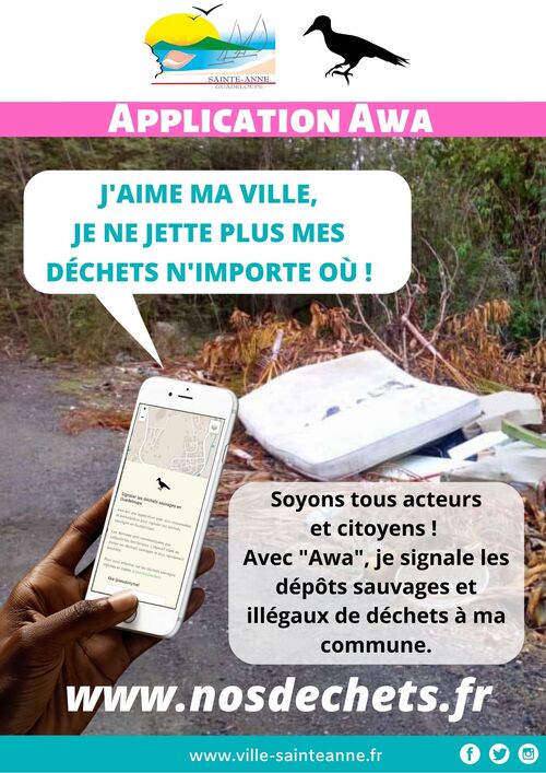 La ville de Sainte-Anne invite la population à découvrir la web-application AWA développée par Jean-Frédéric Sérélé et Olivier Landry. Natifs de Sainte-Anne, ils ont choisi la collectivité comme ville pilote pour tester et lancer leur application écoresponsable. La commune, sensible à leur démarche, soutient leur projet et toute autre initiative en matière de sensibilisation à la préservation de l’environnement.