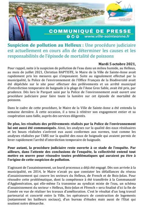 Communiqué de presse suspicion de pollution au Helleux, une procédure judiciaire est actuellement en cours