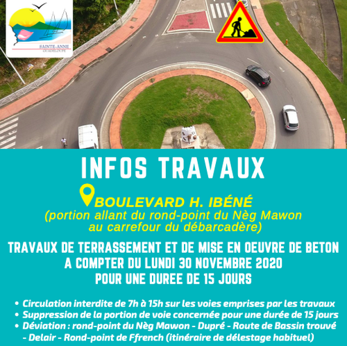 – mise en place de la déviation suivante : rond-point du Nèg Mawon - Dupré - Route de Bassin trouvé - Delair - Rond-point de Ffrench (itinéraire de délestage habituel)
