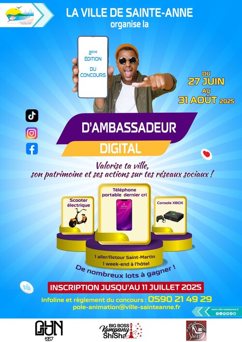 ✅𝐈𝐧𝐬𝐜𝐫𝐢𝐬-𝐭𝐨𝐢 𝐯𝐢𝐭𝐞, 𝐣𝐮𝐬𝐪𝐮’𝐚𝐮 𝟏𝟏 𝐣𝐮𝐢𝐥𝐥𝐞𝐭 𝟐𝟎𝟐𝟓 en envoyant ta lettre de motivation, une copie de ta pièce d’identité, un justificatif de domicile ainsi qu’un exemplaire de la charte d’engagement moral daté et signé, à l’attention du Maire de la ville de Sainte-Anne, par courrier à :