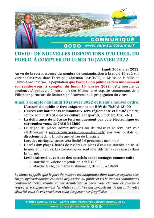 Ces dispositions s’appliquent à compter du lundi 10 janvier 2022 et ce jusqu’à nouvel ordre :