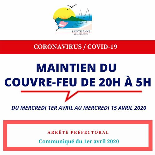 Le Maire de la Ville de Sainte-Anne rappelle la nécessité absolue de rester confiné durant la journée et de suivre les consignes de sécurité sanitaire diffusés par les autorités gouvernementales au regard de la limitation stricte des déplacements.
