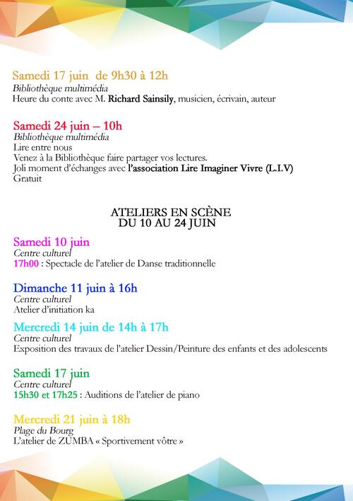 Demandez le programme culturel du mois de Juin.