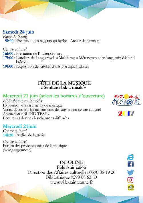 Où sortir, que voir, que faire, ce mois-ci à Sainte-Anne : découvrez ci dessous le programme culturel riche et varié et ....... à ne pas manquer.