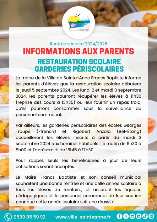 La restauration scolaire sera assurée à partir du jeudi 5 septembre 2024.