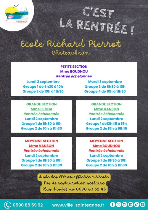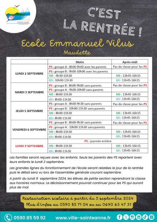 Les garderies périscolaires de Ffrench et Bel étang, accueilleront les enfants inscrits à partir du mardi 3 septembre 2024 aux horaires habituels :