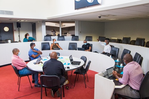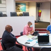 Lors de la séance de travail avec le Syndicat Mixte de Gestion de l’Eau et de l’Assainissement de Guadeloupe :
