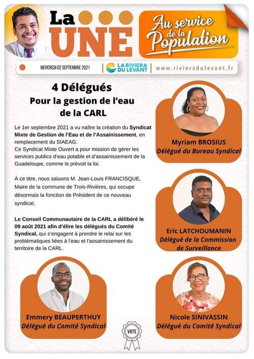 Enfin, le Maire tient à féliciter l’ensemble des acteurs qui ont contribué de près ou de loin à la mise en place de ce nouvel opérateur, en Guadeloupe. Il félicite également son collègue, Jean-Louis FRANCISQUE, le Maire de la commune de Trois-Rivières qui occupe désormais la fonction de Président du nouveau syndicat. Ce qui laisse entrevoir un avenir optimiste.