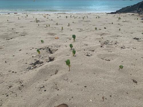 Face à la re-végétalisation naturelle de la plage, la Ville de Sainte-Anne a sollicité, la semaine dernière, l’expertise de l’ONF en charge de la gestion écologique de cet écosystème pour mieux appréhender le phénomène et protéger ces nouvelles pousses.