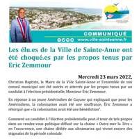 Christian Baptiste, le Maire de la Ville Sainte-Anne et l’ensemble de son conseil municipal ont été outrés et atterrés par les propos tenus par un candidat à l’élection présidentielle, Monsieur Éric Zemmour.