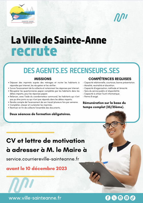 Envoyez vos CV et lettre de motivation à l’attention de M. le Maire à l’adresse suivante : service.courrier chez ville-sainteanne.fr