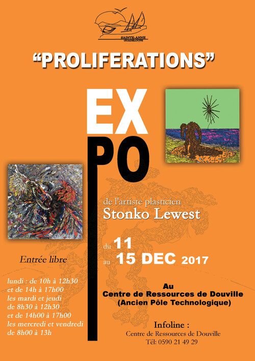 « Proliférations » de l’artiste plasticien Stonko Lewest du 11 au 15 décembre 2017 au Centre de ressources Wilfride Ouanna (ancien Pôle Technologique) à Douville.