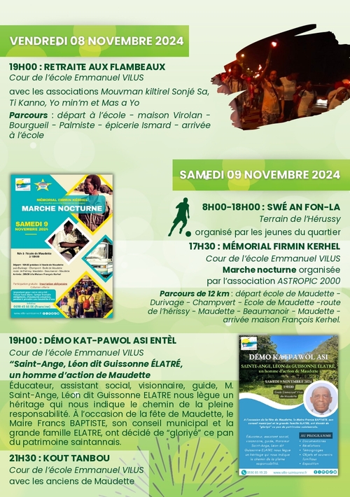 – une retraite aux flambeaux avec les groupes Mouvman kiltirèl Sonjé Sa, Ti kanno, Mas a yo et Yo min’m,