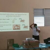 Ce matin, les agents communaux mobilisés sur le terrain et notamment ceux qui accueillent le public sur les différents points d’approvisionnement en eau installés par la Ville, ont participé à une formation sur la gestion des principes d’hygiène et de sécurité sanitaire à respecter sur ces sites tout particulièrement : comment porter un masque, comment accompagner les usagers sur ces sites, comment enlever ses gants, les règles d’hygiène à suivre avant et après chaque utilisation des citernes, jerricans ou des robinets,…