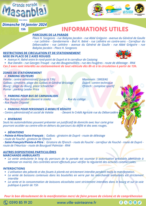 Le Maire Francs Baptiste vous remercie de votre compréhension et vous demande de faire preuve de civisme afin de profiter pleinement de cette saison carnavalesque.