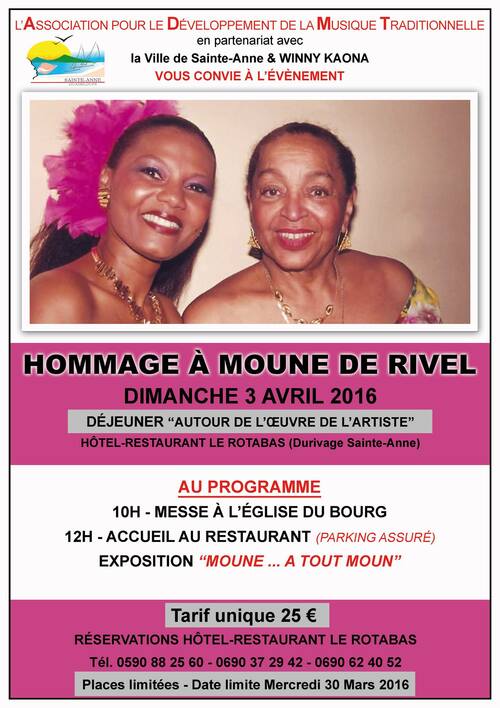 L’Association pour le Développement de la Musique Traditionnelle en partenariat avec la Ville de Sainte-Anne et Winny Kaona rend dimanche 3 avril au Rotabas, un vibrant hommage à Cécile Jean Louis, plus connue sous le nom de Moune de Rivel précurseur de la biguine et militante de la chanson créole.