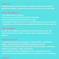 Il s’agit d’une formation qualifiante et de courte durée mise en place à l’initiative de la ville avec un double objectif. A court terme, soutenir l’insertion professionnelle et sociale de jeunes sans diplômes. Et à moyen terme, permettre aux associations de disposer de ressources qualifiées pour développer des activités économiques et sociales autour du sport et des loisirs, sur l’ensemble du territoire.