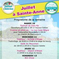 Retrouvez le programme de votre semaine à Sainte-Anne, du mardi 10 au vendredi 13 juillet 2018