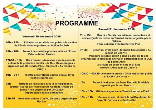 Décembre 2016Comme chaque année, le Nouvel An se fête en grande pompe .....aux Grands fonds grâce à l’investissement des associations de quartier.