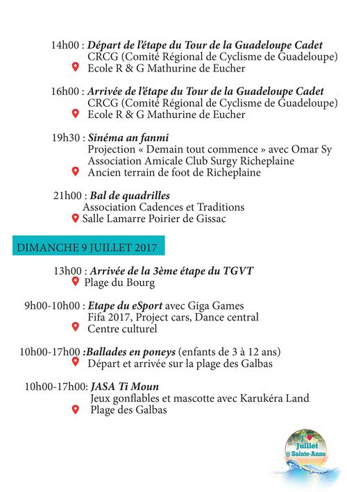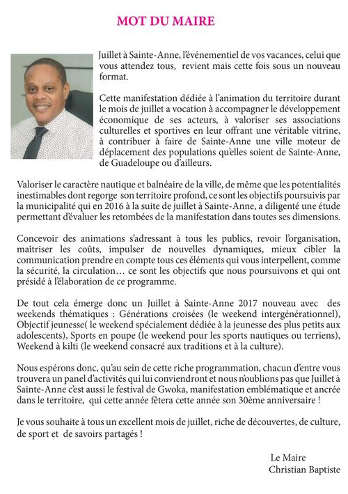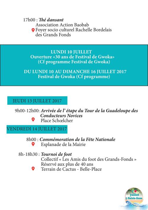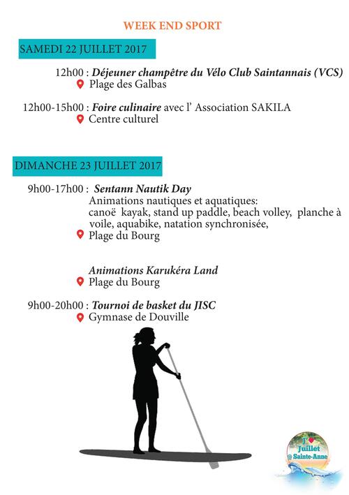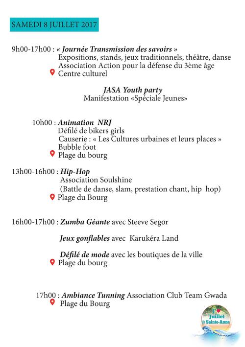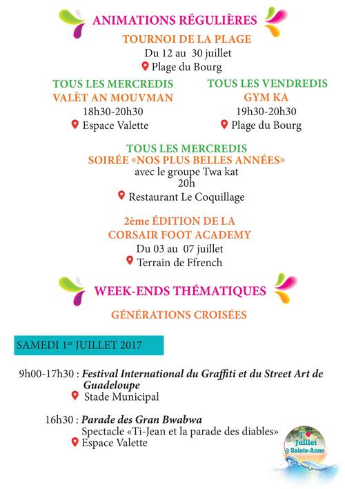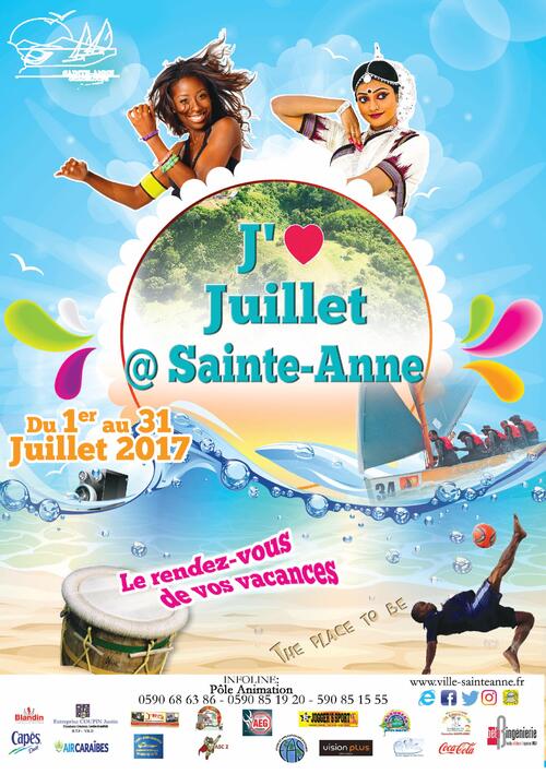 Parce que le mois de Juillet est la période propice au farniente, aux sorties, aux activités sportives et culturelles, la Ville de Sainte-Anne en partenariat avec de nombreux acteurs associatifs de la ville propose une panoplie d’animations pour tous les goûts durant toute cette période.
