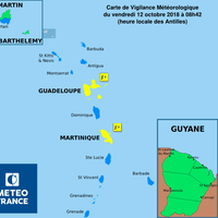 Ce vendredi 12 octobre, la Préfecture de Guadeloupe a placé la Guadeloupe en vigilance jaune pour fortes pluies et orages. La fin de l’événement est estimée au mercredi 17 octobre.