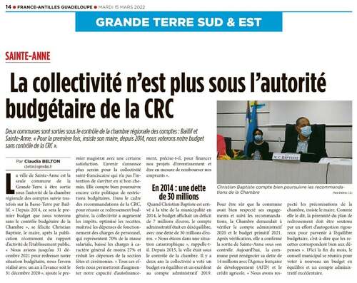 LA VILLE DE SAINTE-ANNE N’EST PLUS SOUS L’AUTORITE DE LA CRC