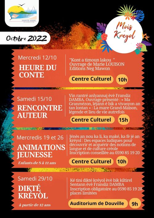 ✅ Samedi 29 – 9h : DIKTÉ KRÉYÒL à l’Auditorium Douville en