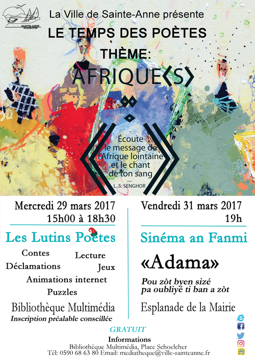 Dans le cadre de la manifestation « Le Temps des Poètes », placée sous le signe de l’Afrique, la Ville de Sainte-Anne organise 2 temps forts :