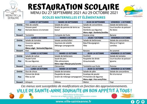 Consultez le menu des repas servis aux élèves des écoles maternelles, primaires, élémentaires.