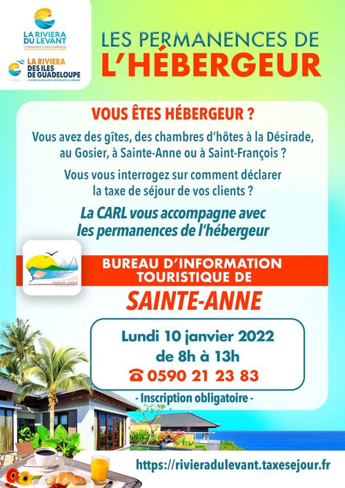 📆 Lundi 10 janvier de 8h à 13h au bureau d’information touristique de Ville de Sainte-Anne Guadeloupe, les agents de la CARL vous accompagneront...