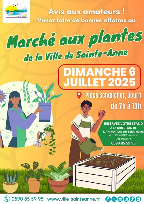 – Le marché aux plantes de la Ville de Sainte-Anne a lieu le 1er dimanche de chaque mois de 7h à 13h, sur réservation.