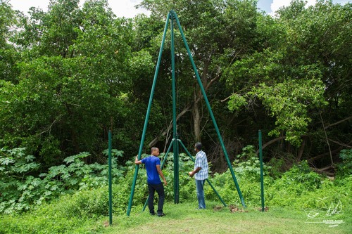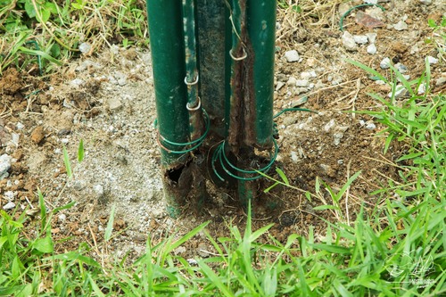 La première phase des travaux débutée le 3 octobre dernier a consisté à appliquer un traitement anti-corrosion. Les travaux se poursuivront avec la fixation des poteaux puis du filet.