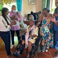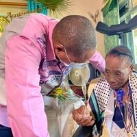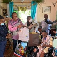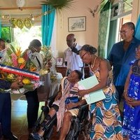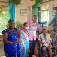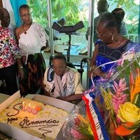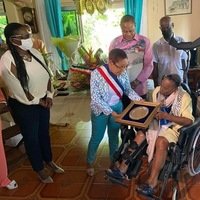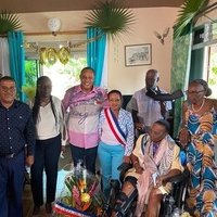 En partenariat avec la Ville des Abymes, Christian BAPTISTE, le Maire de la Ville accompagné de l‘équipe du CCAS se sont réunis pour célébrer les 100 ans Mme MARESTER Annoncia résidente de Montmain.