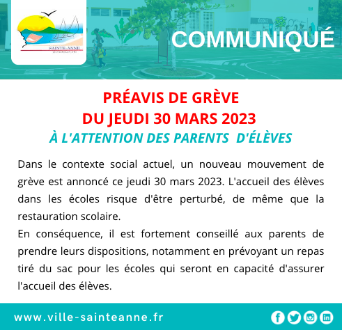 Dans le contexte social actuel, un mouvement de grève est annoncé ce jeudi 30 mars 2023. L’accueil des élèves dans les écoles risque d’être perturbé, de même que la restauration scolaire.