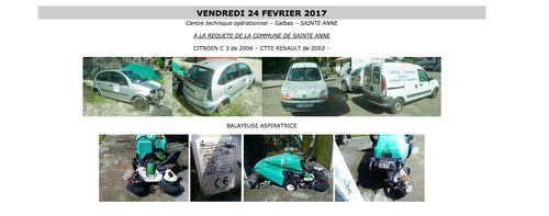 La vente, organisée par un commissaire-priseur, se déroulera le vendredi 24 février 2017 à 12h au Centre Technique Opérationnel de Dupré (anciennement appelé parc automobile du service technique) et sera accessible au grand public.