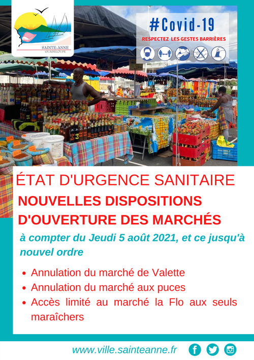- A compter du jeudi 5 août 2021, le marché de Valette et le marché aux puces sont annulés jusqu’à nouvel ordre.