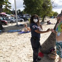 Les équipes de la police municipale, les jeunes en service civique, les agents du Poste de Secours de la Ville et les élus étaient tous mobilisés pour sensibiliser et informer la population. Ils se sont rendus en priorité dans les zones à forte affluence (plage du Bourg, plage de Bois Jolan, Village artisanal, marché La Flo).