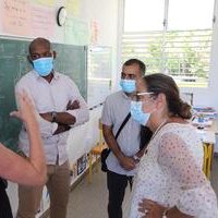 Étaient présents pour la Ville M. Yves QUIQUEREZ adjoint au maire en charge de l’Education et Mme Marie-Chantal FRANCILLETTE Directrice du pôle Animation, Mme Muriel ALOPH pour l’ARS, Mme Joëlle REVERTEGAT Inspectrice de l’Education Nationale de la zone Sainte-Anne/Marie-Galante, M. Didyer MANETTE auteur et éditeur pour les Editions Nèg Mawon ainsi que Mme Muriel DERIVERY auteur et M. Thierry BERGAME illustrateur.