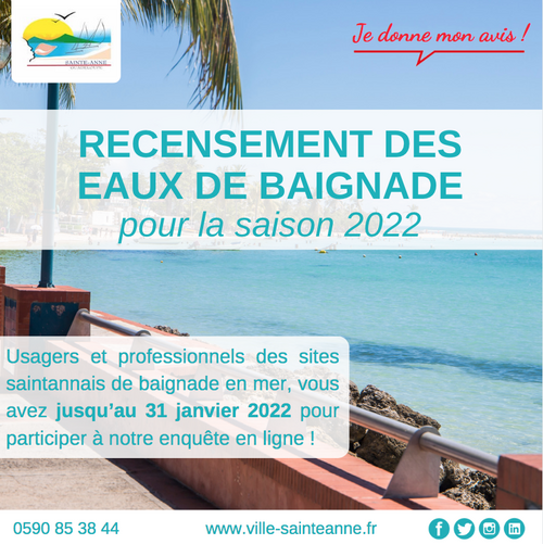 L’objectif de cette enquête est d’établir une liste annuelle des eaux de baignade sur le territoire, afin qu’une surveillance de la qualité de ces eaux soit réalisée par l’ARS Guadeloupe.