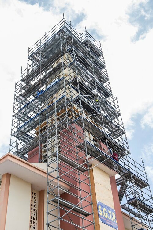 En partenariat avec l’Etat, le département, la DAC et la Région Guadeloupe les travaux d’un montant de 659 955 € permettront de reconstruire l’édifice en créant une nouvelle structure métallique de 33 mètres de haut dont le clocher pour ensuite réinstaller les cloches déjà enlevées par mesure de sécurité en 2013.