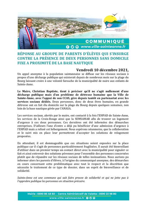 Sainte-Anne est une commune qui sait faire preuve de solidarité et qui ne jette pas à l’opprobre publique les personnes en situation précaire.