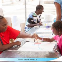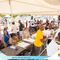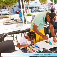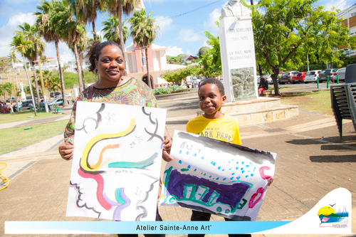 3 artistes-plasticiens Sandra Edwige, Alain Caprice et Antoine Nabajoth ont partagé leur passion toute la journée avec de nombreux visiteurs, jeunes et moins jeunes. Ces derniers ont pu s’exprimer librement sur de grandes feuilles de dessin dans une atmosphère appliquée et conviviale.