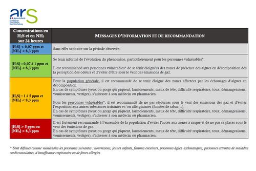 ▶ de se tenir éloignées des zones de présence des algues en décomposition dès la perception des odeurs,