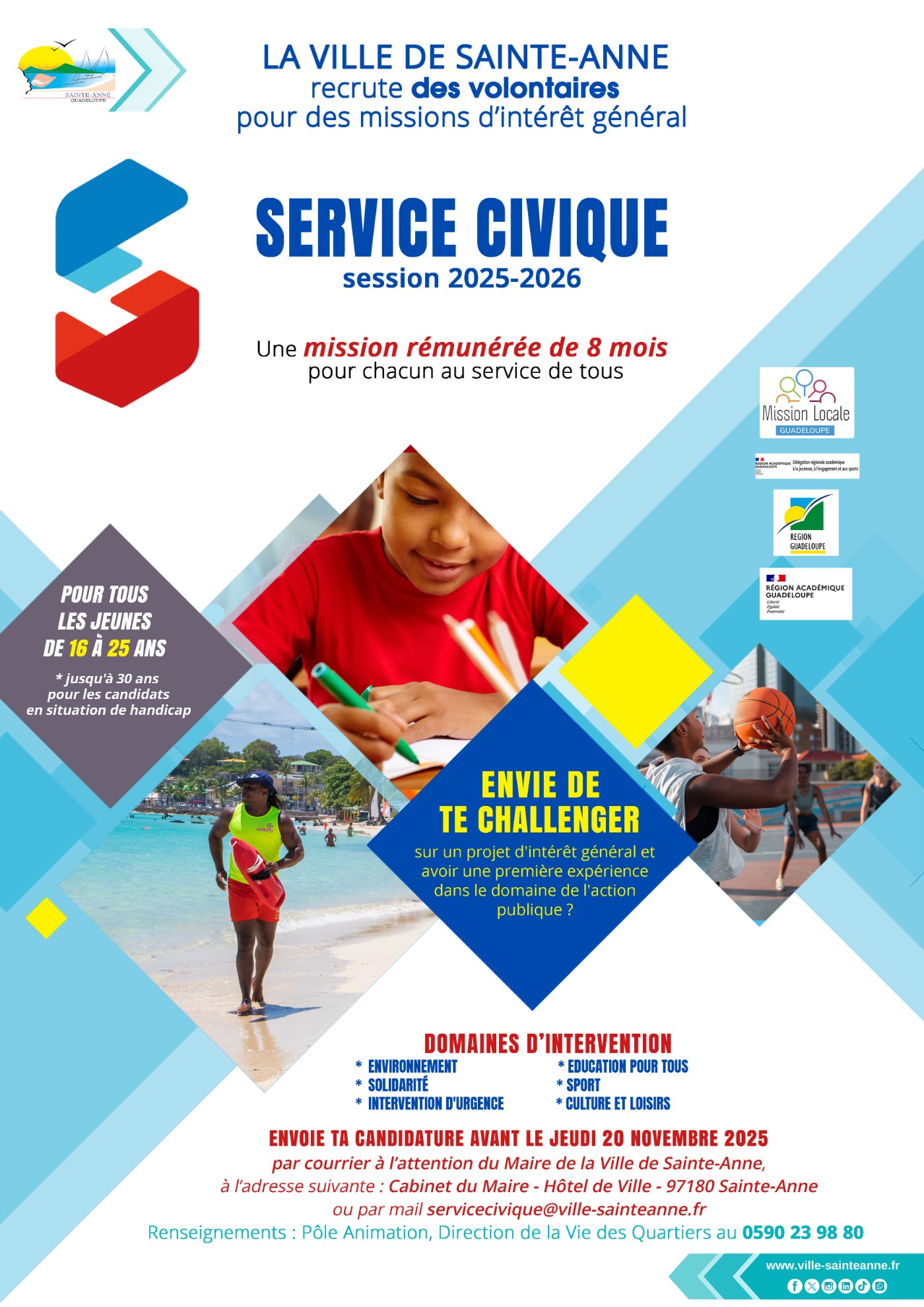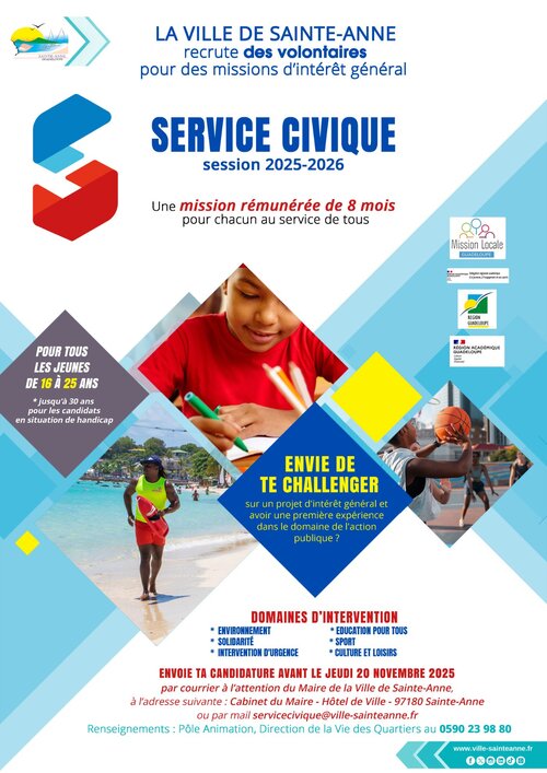 #ServiceCivique | La Ville de Sainte-Anne recrute des volontaires pour le Service 𝐂𝐢𝐯𝐢𝐪𝐮𝐞 𝐬𝐞𝐬𝐬𝐢𝐨𝐧 𝟐𝟎𝟐𝟓-𝟐𝟎𝟐𝟔 ! ✨🤝