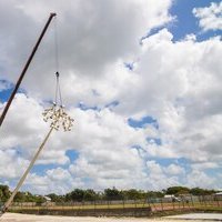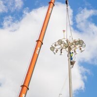 – La dépose des 4 grands mâts et des luminaires du stade de football a sollicité l’intervention d’une grue afin de réaliser la rénovation totale de l’éclairage de la piste et de la pelouse du stade. La dépose et l’évacuation ont été réalisées sans encombre ;