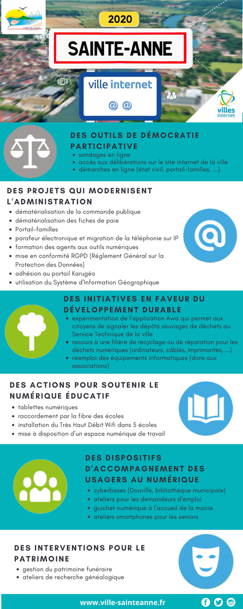 Les deux arobases marquent la volonté de la municipalité de poursuivre la modernisation de l’administration afin de la rendre plus efficace et de réduire la fracture numérique sur le territoire. Malgré les contraintes budgétaires et l’existence de zones blanches, la Ville de Sainte-Anne a su attirer l’attention du jury.